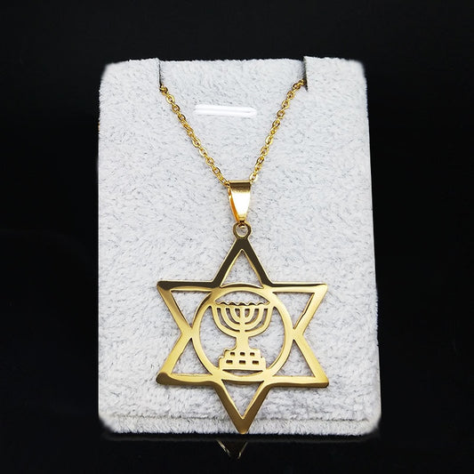 Colar Estrela de David com Menorá Dourado